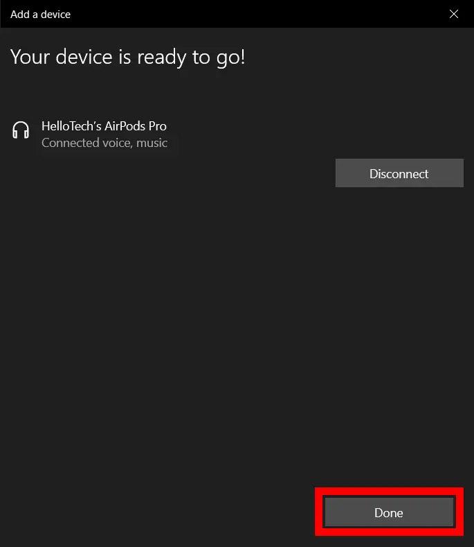 چنانچه بعد از طی این مراحل اتصال صورت نگرفت باید ایرپادها مجددا داخل کیس شارژ قرار گرفته و تنظیمات اتصال ایرپاد به سیستم از ابتدا تکرار شود. با این تفاوت که قبل از این امر باید نام ایرپاد از فهرست بلوتوث لپ تاپ Remove شود تا ایرپادها از حالت Paired با لپ تاپ خارج شوند.