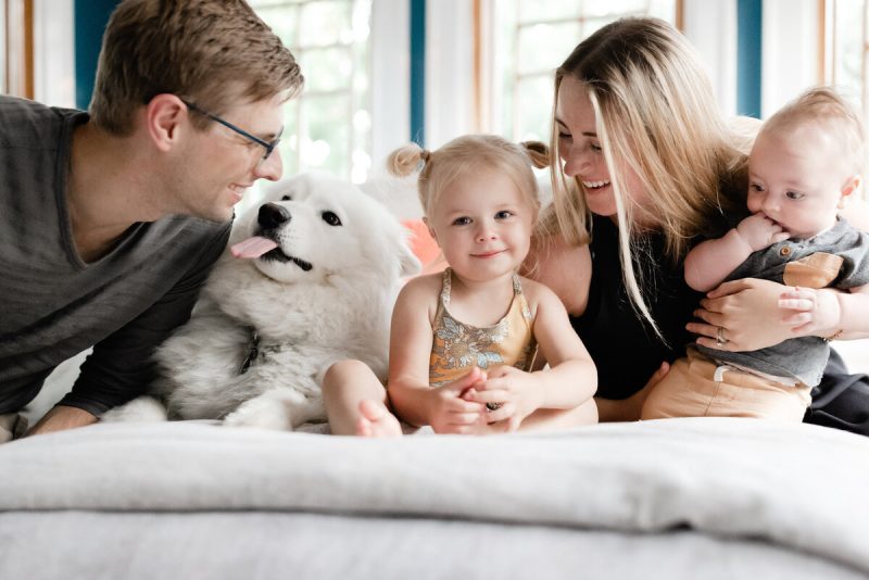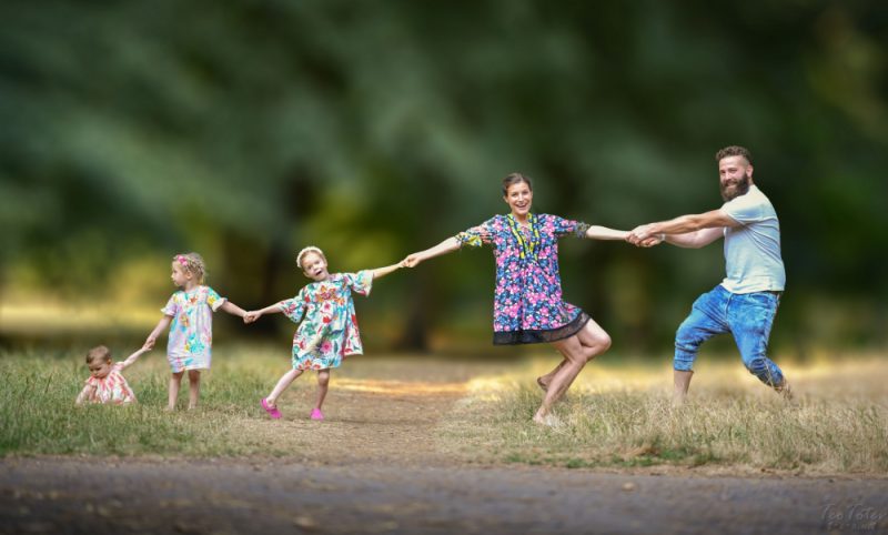 در مورد این که اعضای خانواده چطور در یک عکس پرترهی خانوادگی جای بگیرند خلاق باشید. این قضیه بستگی به این دارد که با چند نفر سروکار دارید و چقدر فضا در اختیار دارید. در مورد خانوادهای با دو فرزند میتوان مطابق عکس یک دایره سر به سر بسیار جالب ایجاد کرد.