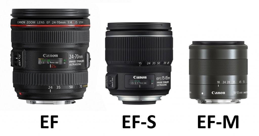 EF-S : لنزهای دارای دهانه EF-S ، بر‌روی دوربین­‌های دارای سنسور APS-C قابل استفاده هستند و حرف S در آن‌ها مخفف عبارت small image circle است. این لنزها معمولاً بر‌ روی دوربین­‌های full-frame قابل استفاده نبوده و موارد استثنائی از آن‌ها همانند لنز Canon EF-S 10-18mm f/4.5–5.6 IS STM را می‌توان بر روی دوربین‌های فول فریم نصب کرد.