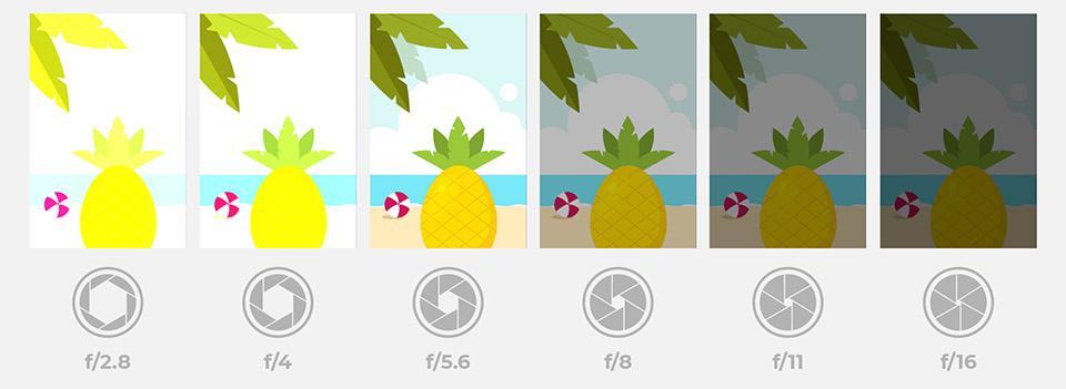 دیافراگم دریچه‌­ای است که میزان نور ورودی به لنز را کنترل می­‌کند. عددی که کنار حرف F بر‌روی لنز مشاهده می‌­کنید، نشانگر این مشخصه است. هرچه عدد دیافراگم بیشتر باشد، دریچه مربوطه بسته‌­تر‌ است و بالعکس. مثلاً دیافراگم f/2.8 از دیافراگم f/16 بازتر‌است. دیافراگم لنزها معمولاً به صورت یک محدوده بیان می­‌شود ( مانند f/2.8 تا f/22 ). البته بر‌روی لنز‌ها ، عدد حداقل دیافراگم نوشته و از بیان حداکثر آن صرفه نظر می‌شود؛ به عنوان مثال، لنز‌هایی با حداقل دیافراگم F/2.8 که ممکن‌است فیکس باشند و یا در فاصله کانونی‌های متفاوت نیز یک عدد حداقل دیافراگم را داشته باشند و یا لنز‌هایی با حداقل دیافراگم F/3.5-F/5.6 که در کم‌ترین فاصله کانونی، F/3.5 و در بیشترین فاصله کانونی خود، F/5.6 را در اختیار ما می‌گذارند.