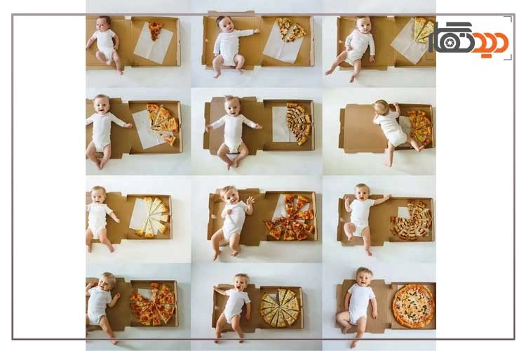 این روش نه تنها تغییر چهره و رشد او را نشان میدهد، بلکه عکسها را تبدیل به یک داستان تصویری پیوسته میکند. در ماه دوازدهم، میتوانید از تمام عکسهای ماههای قبل به صورت کلاژ دور نوزاد استفاده کنید که اوج حس نوستالژی را منتقل خواهد کرد.