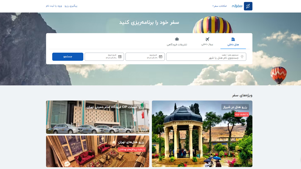 سایت سفرانه یکی از بهترین و جوانترین سایت های رزرو هتل در ایران محسوب میشود. شما در این سایت می توانید سریع ترین و ساده ترین راه برای رزرو هتل را تجربه کنید. رابط کاربری خوب سایت و پوشش دهی تمامی شهرهای ایران رزرو هتل را بسیار آسان کرده است.