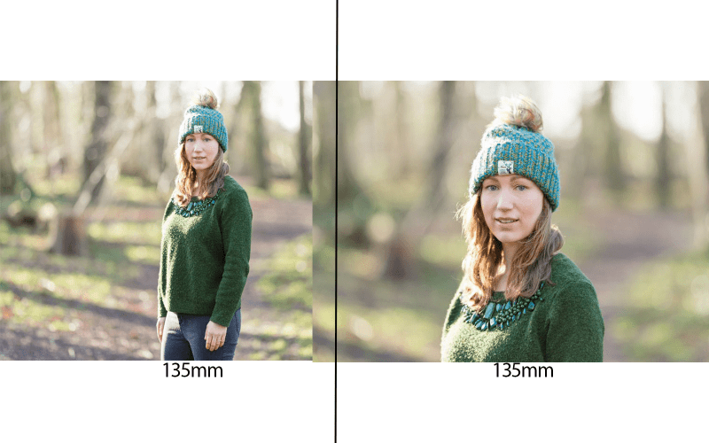 با این لنزها میتوانید به صورت نزدیکتر شوید و همچنان اجزای صورت را با تناسب واقعی به مخاطب نشان دهید. به تصویر زیر دقت کنید: