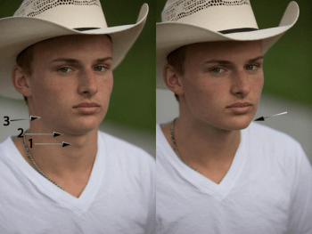 در بردار 2 میبینیم که این ژست حتی برای فردی که لاغر اندام است غبغب شکل داده است. در تصویر سمت راست سایه طبیعی است و هایلایتی بالای آن نمیبینیم. در بردار 3 هم خط فک و زاویه آن محو شده است. در حالی که در تصویر راست یک شات عالی به شمار میآید. در نهایت باید به بردار تصویر سمت راست هم اشاره کنیم که چانه فرم گردِ بهتری دارد.