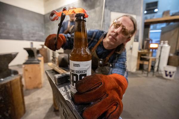 من در Lawless Forge، یک مغازه آهنگر در سیاتل جنوبی را پیدا کردم که در بین دوستان، خانوادهها و همکارانش گروهای آموزشی را تشکیل میداد و تخصصهایی مانند ساخت در باز کن بطری از میله فولادی یا چاقوی نعل اسب را به آنها میآموخت. من یک فرصت عالی پیدا کردم تا از او و کاری که انجام میدهد عکاسی کنم. من همچنین تصور نمیکردم که نورپردازی در آنجا تا این حد کم باشد.