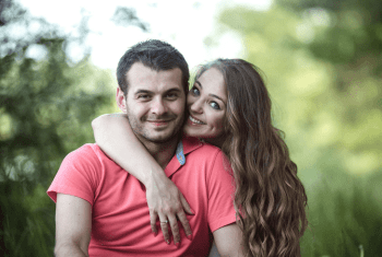 با اینکه در تصویر قبل هیچ تماس دست یا چشم از مرد نمیبینیم، اما لبخندِ لب و لبخندِ چشم باعث میشوند ما حس نکنیم که ارتباط مشکلی دارد. تیشرت ساده مرد، موهای زن که تمام بدن او را به جز صورت پوشانده و نمایش اکسسوری حلقه، همگی جزئیاتی هستند که در یک بکگراند تار blurry باعث میشوند که نظر بیننده را جلب کنند.