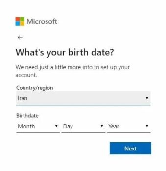 - در صفحه باز شده اطلاعات دیگری از قبیل کشور و تاریخ تولد خود را وارد کرده و بر روی گزینه Next کلیک کنید.