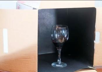 یک پارچه سیاه یا کاغذ مات سیاه در پشت و زیر شیء شیشهای قرار دهید تا چیز دیگری در عکس قابل مشاهده نباشد. در سمت چپ و راست شی، خارج از قاب عکستان، کاغذهای سفید مستطیل شکل را به صورت عمودی قرار دهید.