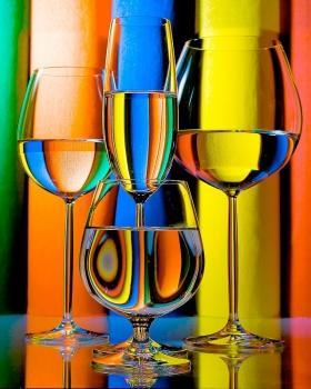 عکس زیر یک نمونه هوشمندانه از تعدد رنگ در عکاسی از لیوانهای شیشهای میباشد: