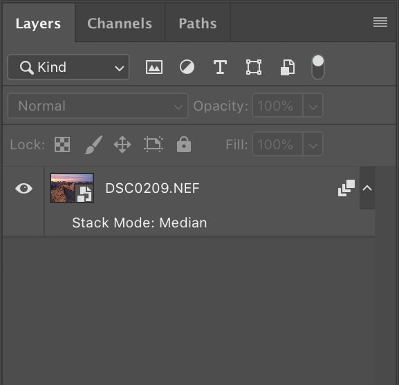 اکنون که یک Smart object داریم که میتوانیم برای کاهش نویز، تمام تصاویر را با هم ادغام و ترکیب کنیم. میتوانید با دنبال کردن مراحل زیر این کار را انجام دهید :
