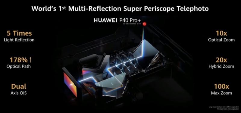 نکته اصلی دستیابی به چنین فاصلههای کانونی و بزرگنماییهایی تا این میزان، استفاده از طراحی دوربین پریسکوپی است. فاصله کانونی طولانیتر در اصل به معنی فاصله بیشتر بین لنز و سنسور است. این امر نیاز به یک بدنهی بزرگ در گوشیهای هوشمند دارد تا تمام المانها در آن چیده شوند،، به همین دلیل هم هوآوی به طراحی پریسکوپی روی آورده است. سنسور دوربین در این نوع طراحی 90 درجه به سمت داخل چرخیده و در داخل بدنه و در امتداد گوشی قرار میگیرد و توسط یک آینه نور به سمت سنسور هدایت میشود تا مشکلی از بابت زاویه دید یا ثبت تصویر نداشته باشید. این یک سبک طراحی جمع و جور است که به تازگی در گوشیهای پیشرفته مورد استفاده قرار میگیرد و مشکل عدم توانایی چینش لنزهای تله فوتو در آنها را تا حد زیادی مرتفع کرده است.