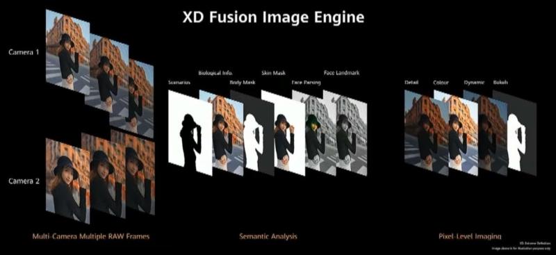موتور XD Fusion برای اجرای الگوریتمهای پیشرفته خود از توان تراشه کایرین 990، پردازشگر سیگنال تصویر و واحد پردازش عصبی استفاده میکند. این موتور میتواند چندین فریم را با استفاده از چند دوربین به طور همزمان ثبت کند و برای کارهای مختلفی مانند شناسایی سوژه مورد نظر و اعمال تغییرات، از آنها بهره میبرد.