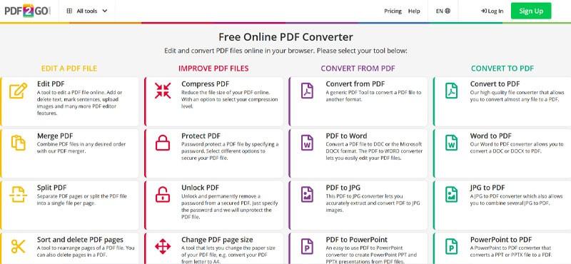 یکی از روشهای تبدیل فایلهای پی دی اف به ورد که هم برای گوشی و هم در ویندوز قابل اجراست، استفاده از سایتها و سرویسهای آنلاین میباشد. سرویسهای زیادی جهت تبدیل فایلهای پی دی اف به ورد وجود داشته که عملکرد تمامی آنها با یکدیگر مشابه است. در واقع کافیست تا فایل پی دی اف در این سایتها آپلود شده و فرمت مورد نظر جهت تبدیل فایل PDF انتخاب شود. پس از آن، سایت به صورت خودکار نسبت به تبدیل فایل PDF به فرمت دلخواه اقدام میکند. پس از تکمیل فرآیند تبدیل، لازم است تا فایل تبدیل شده دانلود شود. از جمله سایتهایی که برای تبدیل فایلهای پی دی اف به ورد میتوانند مورد استفاده قرار گیرند میتوان به سایتهای زیر اشاره کرد.