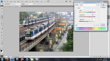 - زمانی که کارمان با فوکوس تمام شد، نیاز دارید تا رنگهای تصویر خود را غلیظتر کنید. برای رسیدن به یک تصویر مینیاتوری خوب، در اکثریت مواقع Saturation تصویر روی مقدار 40 تنظیم میشود، زیرا تصاویر مینیاتوری معمولاً به صورت روشن نقاشی میشوند. بنابراین برای رسیدن به نتیجهی خوب، باید Vibrance یا Saturation تصویر را تنظیم کنید.