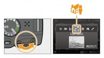 برای ورود به حالت انتخاب صحنه، دکمه گردان روی دوربین خود را چرخانده و آن را در حالت Effect قرار دهید.