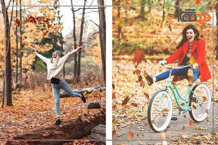 جنگل زمستانی و وهم و یکدستی سفید رنگ برف در پس زمینۀ سوژه با وجود یک عنصر رنگی، خارقالعاده خواهد بود. روزهای سفید جنگل را از دست ندهید. ژست عکاسی در جنگل میتواند با تمرکز به عبور نور از لای لباسها یا تارهای مو همراه باشد.