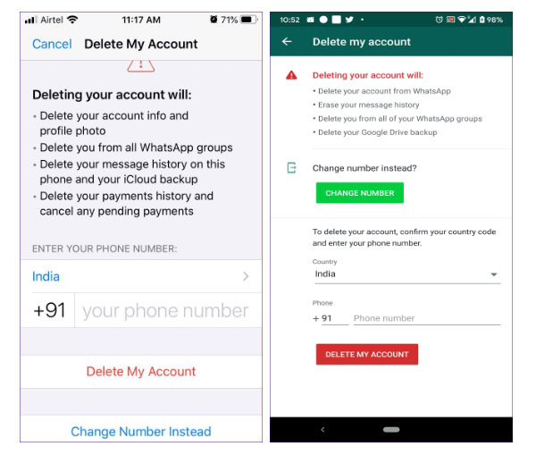 همانطور که تا اینجا متوجه شدهاید برای بازیابی یک حساب واتساپ نیازی به دانش فنی است و اطلاع از بخشهای مختلف یک گوشی و یک راهنمای ترجیحاً تصویری کافی است. اولین نکتهای که باید به آن دقت کنیم این است که اکانتی که قرار است بازیابی شود از طریق دیلیت اکانت از بین نرفته باشد. چرا که در این صورت تمامی پیامها و گروهها پاک میشوند و در صورتی که با همان شماره به واتساپ برگردید یک اکانت نو و کلید نخورده تحویل میگیرید.