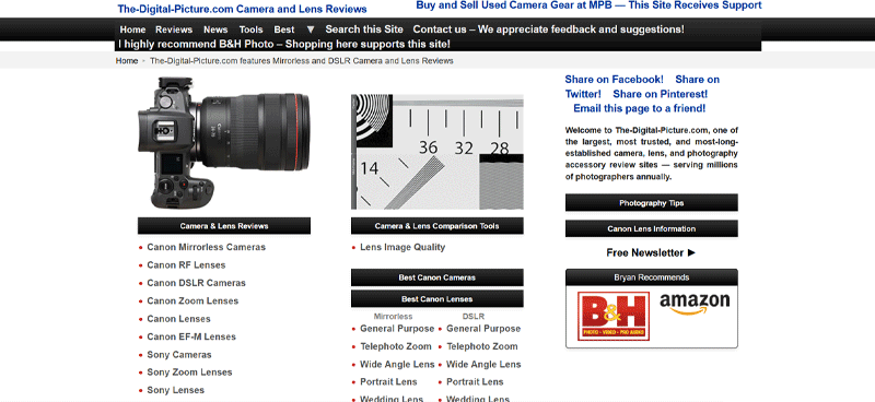 در این سایت اطلاعات زیادی در رابطه با بررسی دوربینها، بررسی لنزهای دوربین، بررسی برندهای معتبر تولیدکننده تجهیزات عکاسی و… ارائه شده و همچنین فهرستی از بهترین تجهیزات برای هر شاخهای از عکاسی نیز در اختیار کاربران قرار گرفته است. از دیگر ویژگیهای این وبسایت میتوان به صفحات وبلاگ و اخبار به روز مربوط به صنعت عکاسی ارائه شده در آن اشاره کرد.