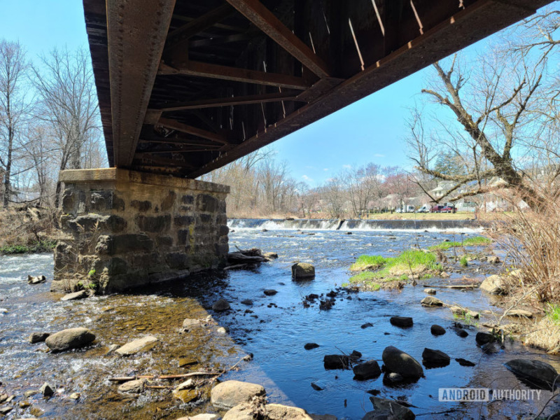 در تصویر ثبت شده از دیوار سنگی، تقریبا میزان کنتراست و جزئیات یکسان است، اما تصویر سمت راست نویز بیشتری دارد. در مورد تصاویر پایین در زیر پل نیز همین مسئله صادق است. باز هم، اشباع بیش از حد رنگ سبز در تصویر سمت راست بسیار جالب است، گرچه رنگ آسمان در آن اندکی مردهتر و کمرنگتر است.