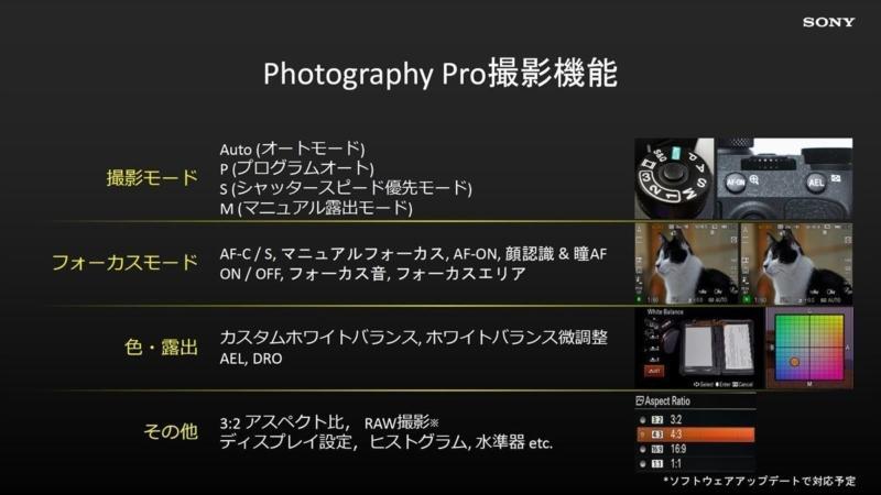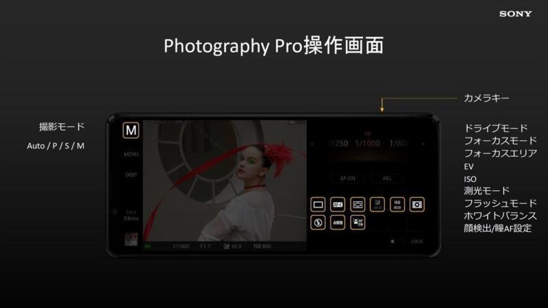 به منظور استفادهی حرفهای از تمام ویژگیهای دوربین اکسپریا 1 مارک 2 ، سونی از اپلیکیشن Photography Pro برای آن استفاده کرده است. این اپلیکیشن را میتوان نسخهی مختص به عکاسی اپلیکیشن Cinema Pro دانست که به منظور فیلم برداری حرفهای در گوشی اکسپریا 1 دیده بودیم.