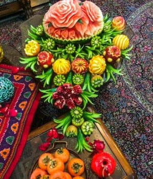 سبد گل و میوهآرایی سفره شب یلدا عروس