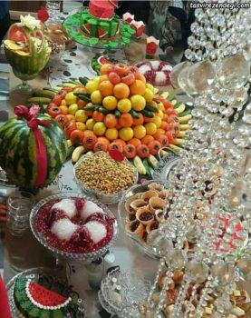تزیین آجیل و کیک عکس سفره شب یلدا عروس