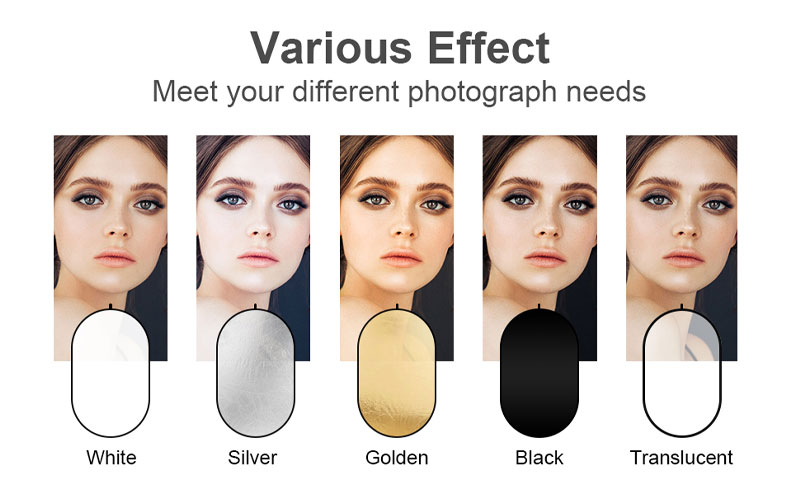 همانطور که گفتیم رفلکتورها با توجه به اندازه و رنگی که دارند شناخته می‌شوند. به همین خاطر معمولا در پَک‌های چندلایه عرضه می‌شوند تا نیازهای اساسی از یک بازتابنده نور برطرف شوند. در این رفلکتور وسکات می‌توانید یک پَک پنج لایه وسکات در رنگ‌های سفید، مشکی، طلایی و نقره‌ای را مشاهده کنید. رفلکتورها ممکن است شکل خاصی به خود بگیرند و همانند مدل رفلکتور خمیده باشند که نور جهت‌دارتری تولید می‌کند.