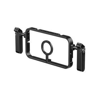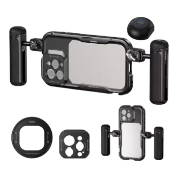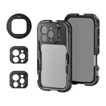 کیج موبایلی، یک محفظه یا قاب فلزی است که گوشی موبایل را در خود جای میدهد. این محفظه دارای دستگیره است و به شما امکان میدهد گوشی را با هر دو دست محکم نگه دارید. این ویژگی باعث میشود تا هنگام فیلمبرداری با موبایل، لرزشها و حرکات ناخواسته به حداقل برسد و فیلمهای شما ثبات و کیفیت بهتری داشته باشند. علاوه بر این، کیجهای موبایل معمولاً دارای پایهها و محلهای اتصال برای لوازم جانبی مختلف مانند میکروفون، نور پرتابل، لنزهای اضافی و غیره هستند و شما میتوانید با اضافه کردن این لوازم جانبی، محیط کاری حرفهایتری برای خود فراهم کنید و از کیفیت بالاتری در فیلمبرداری با موبایل بهرهمند شوید.
