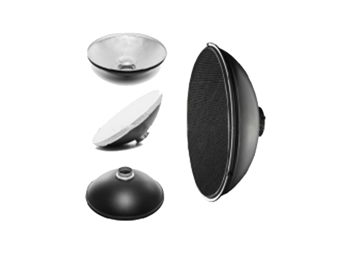 %4.3نور بیوتی دیش ترکیبی از نور سافت باکس و و رفلکتور استاندارد است ، به این معنی که نه به نرمی نور سافت باکس است نه به خشنی و تیزی نور رفلکتور .این شکل دهنده ی نور ، نوری نرم و یکنواخت رو با زاویه ۱۲۰ درجه پراکنده می کند و همزمان نوری متمرکز بر وسط را انعکاس می دهد، در نتیجه ناحیه ی کوچکی دارای نور روشن تری است .همچنین به خاطر روکش داخلی نقره ای، دارای نوری ایده آل و عالی است.