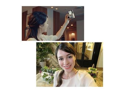 هنگام عکاسی شما می توانید تنظیمات دوربین را از حالت Smooth Skin Tones و Background Blur تا Brightness و دیگر حالت ها تغییر دهید. همچنین استفاده از سلف-تایمر self-timer قابل تنظیم، زمان کافی را به شما می دهد؛ تا بتوانید ظاهرتان را مرتب کنید؛ ژست بگیرید؛ لبخند بزنید؛ و یا اینکه از دوستتان بخواهید که با شما عکس بگیرد. مد (حالت) نرم کننده پوست Smooth Skin mode می تواند در گرفتن عکس های پرتره ی عالی در هر دو مد (حالت) Self Portrait mode و سایر مدهای عکاسی، به شما کمک کند؛ به طوری که شما خیره کننده به نظر برسید.