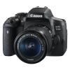 دوربین عکاسی کانن 750D با رنگ مشکی و در ابعاد 132×101×78 میلیمتر با وزن 555 گرم به بازار عرضه شده است. دوربین کانن 750D با لنز 18-55 از یک صفحه نمایش لمسی و کاملاً متحرک بهره مند بوده و بسیار مناسب عکاسی و فیلمبرداری در زوایای مختلف است. صفحه نمایش دوربین کانن 750D از نوع TFT-LCD در اندازه 3 اینچ است.