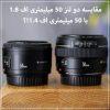دیافراگم لنز 50 اف 1.4 عریضتر از اف 1.8 می باشد ولی در نتیجه آنچنان محسوس نیست.