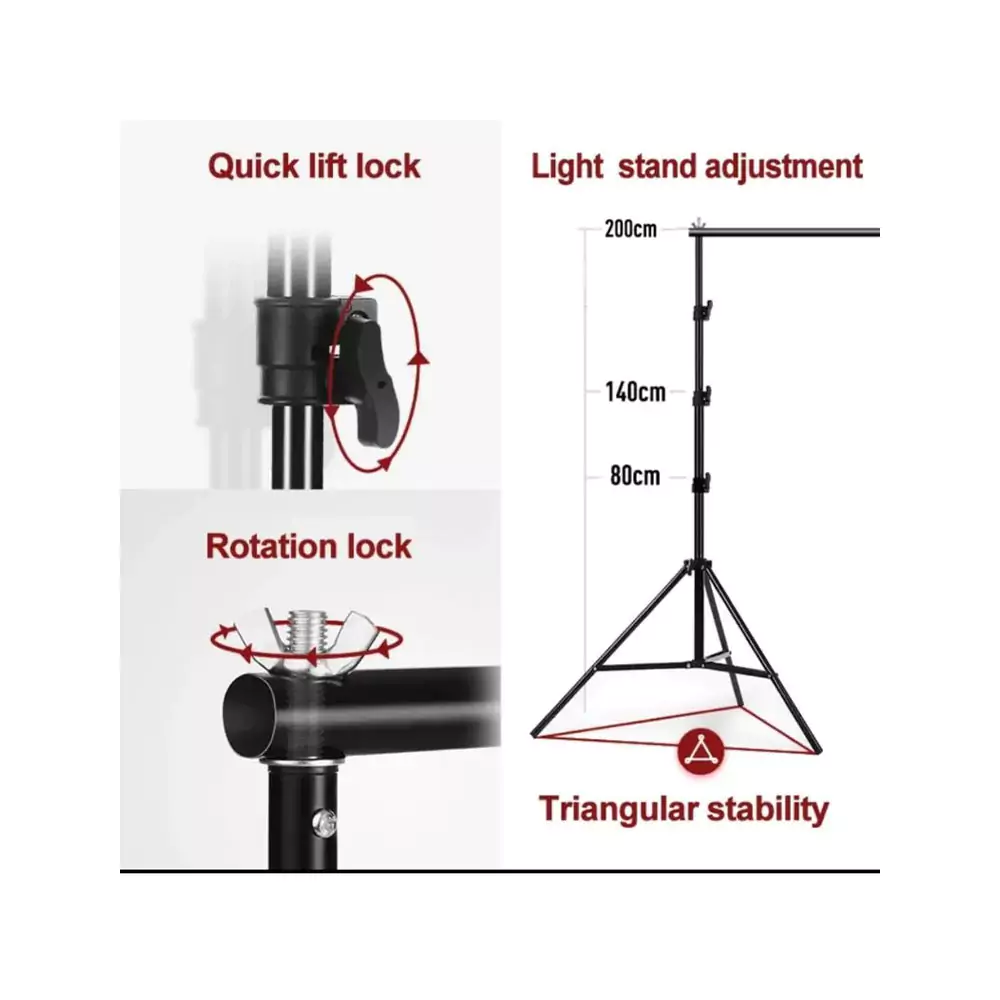 پشتیبانی از فونهای مختلف: این پایه قابلیت نگهداری از فونهای با ابعاد 2×3 و 5×3 متر را دارد. این امر برای آتلیهها و استودیوهای عکاسی با اندازههای مختلف مفید است.