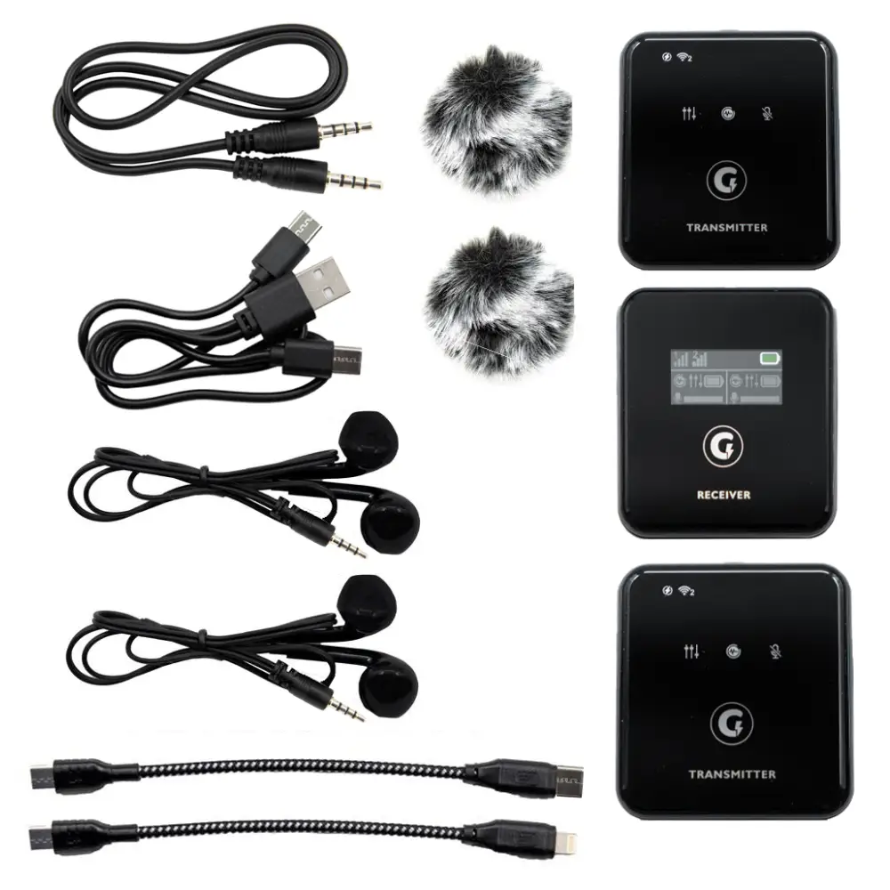 - دارای: دو عدد فرستنده/یک عدد گیرنده/دو عدد خز بادگیر/هندزفری/کابل اتصال به آیفون/کابل اتصال به دوربین/کابل شارژر میکروفون