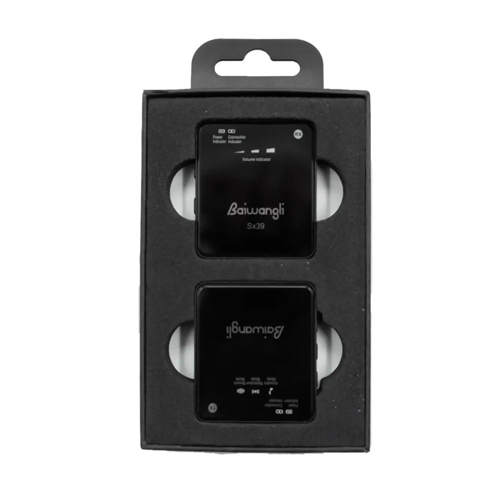 - دارای: یک گیرنده و یک فرستنده/کابل صدا/دفترچه راهنما/کابل شارژ