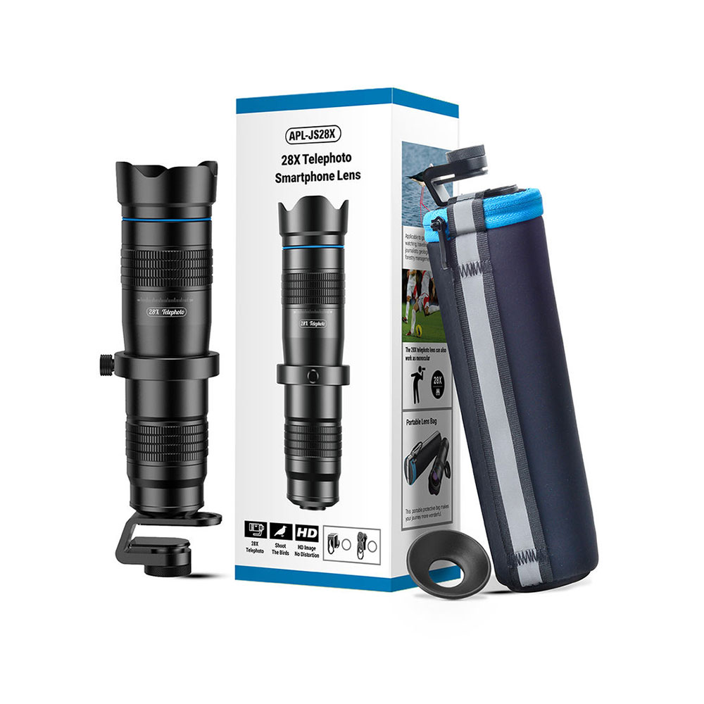 لنز موبایلی تله زوم Apexel 28X یک لنز باکیفیت بوده که به راحتی روی دوربین موبایل یا تبلت نصب میشود. قدرت بزرگنمایی این لنز 28 برابر بوده که سبب میشود عکاسی از سوژههای خیلی دور نیز امکانپذیر باشد.