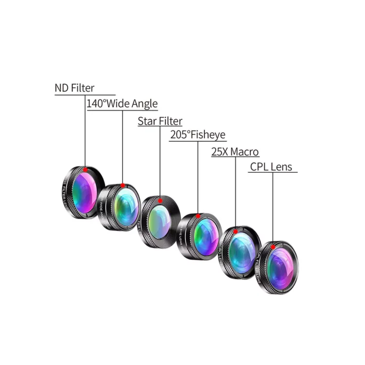کیت لنز موبایل Apexel APL-DG6 شامل ۶ لنز مختلف است: