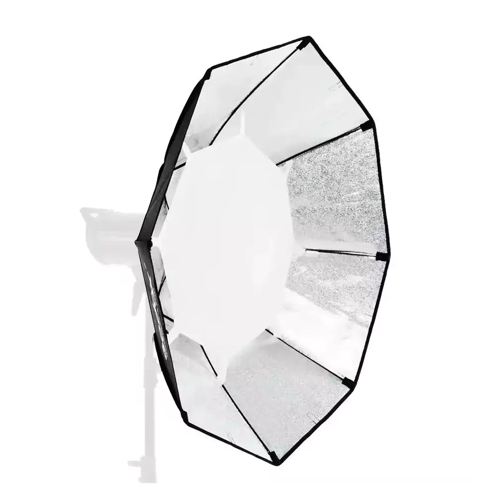 این اکتاباکس دارای قطر 90 سانتیمتر است و طراحی هشتضلعی آن به توزیع بهتر نور کمک میکند. ساختار چندلایه پخشکننده نور (دیفیوزر داخلی و خارجی) باعث یکنواختی بیشتر نوردهی میشود. پوشش داخلی نقرهای بازتابنده، شدت نور خروجی را بهطور قابل توجهی افزایش میدهد تا بهترین نتیجه را در پروژههای شما به ارمغان بیاورد.