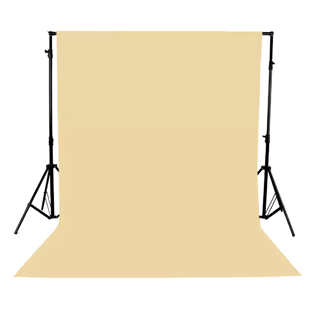 فون عکاسی کرمی به صورت رول شده فروخته میشود. این پرده عکاسی دارای جنس پارچهای بوده و مقاومت بسیار بالایی دارد. در پارچه هیچگونه بافتی وجود ندارد. این بکگراند از ترکیب چسب و پرز ساخته میشود. این بکگراند بدون پایه نگهدارنده عرضه میشود.