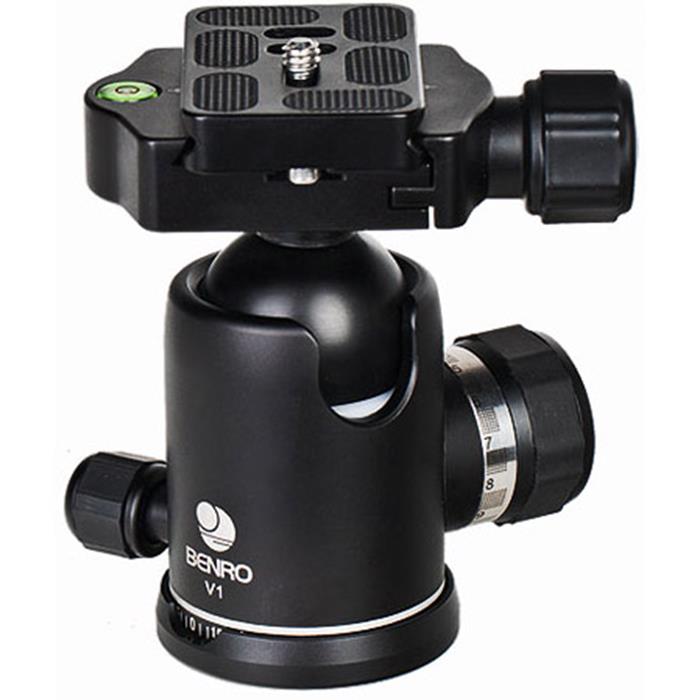 این سه پایه دارای هد توپی V1 می باشد که این هد، همراه با یک قفل دو زمانه با کفی QR طراحی شده که امنیت دوربین شما را تضمین می کند. قابلیت Pan با زاویه ی 360 درجه، از ویژگی های منحصر به فرد این سه پایه است که عکاسی پانوراما را برای علاقه مندان به طبیعت فراهم کرده است.