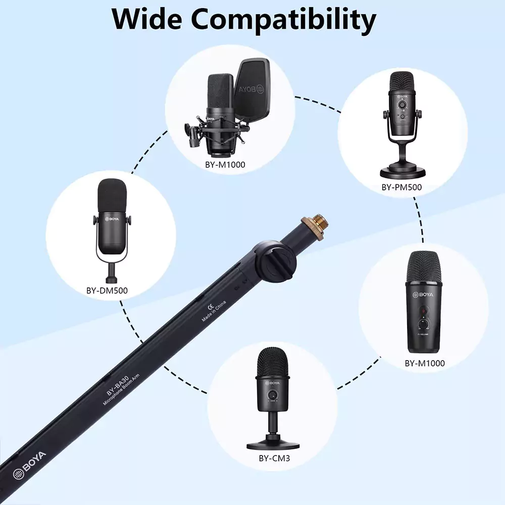 پایه میکروفن BOYA BY-BA30 از جنس فلز است که استحکام و دوام زیادی دارد. این پایه میکروفن میتواند وزن انواع میکروفنهای مختلف از جمله مدلهای سنگین و کندانسور را تحمل کند. این ویژگی آن را برای استفاده در استودیوها، جلسات پادکست، ضبط موسیقی و دیگر کارهای حرفهای بسیار مناسب میسازد.