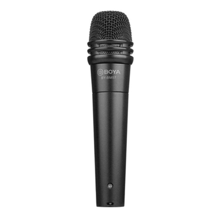 میکروفون دستی بویا مدل BY-BM57 یک میکروفون کاردیوئیدی است که برای ضبط صدای ساز مانند درام یا گیتار ایده آل است. این میکروفون دارای فیلتر پاپ داخلی است و به صورت استاندارد با یک پایه میکروفون کج و یک کابل پنج متری XLR تا 6.5 میلی متر ارائه می شود. این میکروفون از دامنه دینامیکی زیاد برخوردار است. (تفاوت بین نرم ترین و بلندترین صداهای ممکن که میکروفون می تواند به درستی ثبت کند)