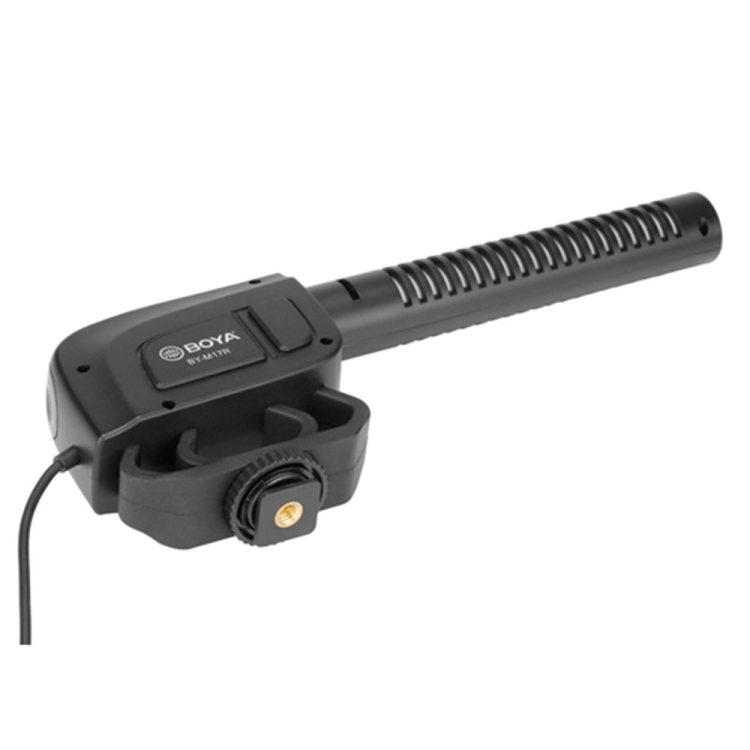 میکروفون بویا مدل BY-M17R یک میکرفن کاندنسور سوپر کارادیود با قابلیت نصب روی دوربین است که به صورتی طراحی شده که بتواند کیفیت صدا را برای کلیپهای یوتیوب، مصاحبه، وی لاگ و دیگر محتواهای ویدئویی تولید شده توسط دوربینهای DSLR و دوربینهای بدون آینه بهبود بخشد و شفافیت صدا را به خوبی حفظ نماید. میکروفن بویا مدل BOYA BY-M17R از پلاستیک ABS فشرده ساخته شده و ماندگاری آن بالا است. این میکروفن توانایی رفع شوک ناشی از لرزش و رفع نویز باد را دارد.