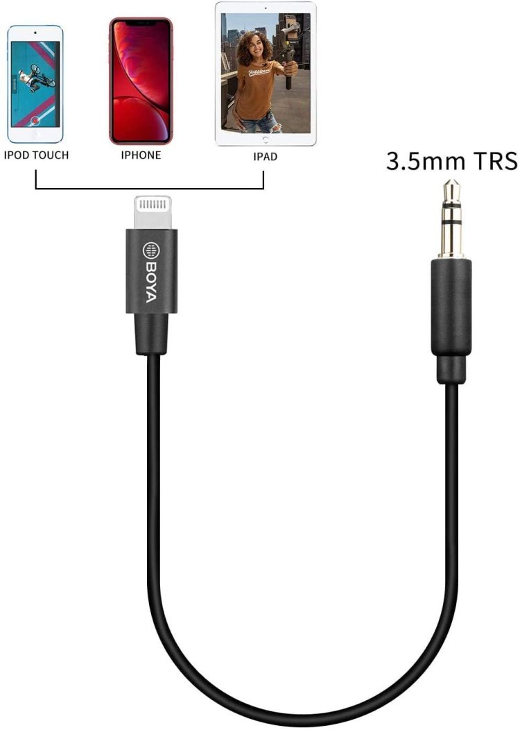 میکروفون یقه ای BY-M2D، مستقیماً به دستگاههای iOS متصل میگردد. دستگاههایی مثل iPhone، iPad، iPod Touch، میتوانند با این میکروفون کار کنند. این اتصال، از طریق کانکتور Lightning صورت میپذیرد. این کانکتور، طبق استاندارد MFI اپل است. کابل 3.5 میلیمتری که در جعبه این محصول وجود دارد، آداپتور TRS به Lightning است.