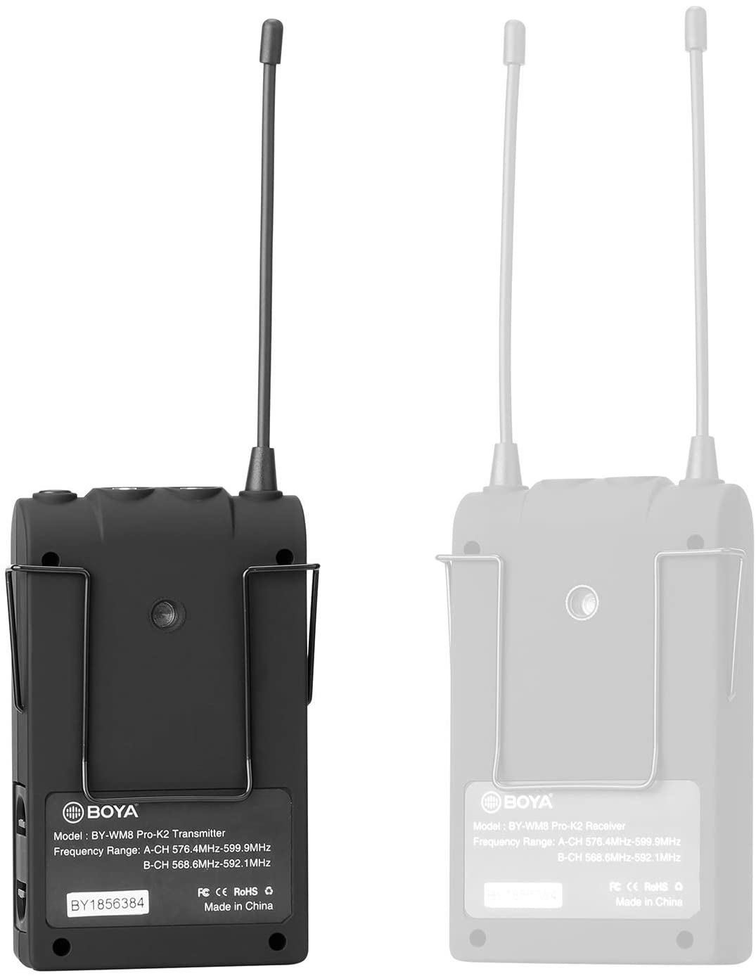 فرستنده میکروفون بویا By-TX8 PRO یک فرستنده بی سیم می باشد که می توانید با مجموعه میکروفون بی سیم BY-WM8 Pro-K1 از آن استفاده کنید. فرستنده میکروفون بویا By-TX8 PRO مجموعه یک ست است و برای مصاحبه بسیار مناسب می باشد، همچنین برای ENG / EFP، تولید فیلم و موارد دیگر ایده آل است. این فرستنده (مجهز به نمایشگر LCD) به صورت استاندارد با میکروفون lavalier جهت دار چند جهته ارائه می شود. یکی از ویژگی های فرستنده میکروفون بویا By-TX8 PRO میزان تحریف کم آن است که منجر به کیفیت صدای بالاتر می شود. علاوه بر این، فرستنده بویا جمع و جور و سبک می باشد. فرستنده از دو باتری AA استفاده می کند (که شامل داخل پک نمی شود)، به شما امکان می دهد تا ۶ ساعت از آن استفاده کنید. در صورت عدم وجود هیچ مانعی در این فاصله، فرستنده ۱۰۰ متر جوابگو خواهد بود.