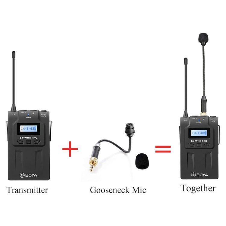 این میکروفون سیم دار یقه ای برای استفاده در فرستنده های بی سیم BY-WM4 ، BY-WM5 ، BY-WM6 و BY-WM8 (بویا) و همچنین UwMic9 / UwMic15 (سارامونیک) مناسب می باشد. این محصولات را می توانید با لوازم جانبی اختیاری پیدا کنید.