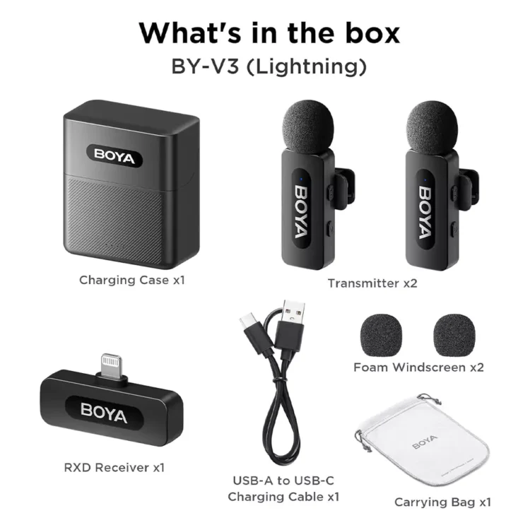 میکروفون بیسیم Boya BY-V3 Wireless Microphone For Lightning انتخابی عالی برای کسانی است که به دنبال یک میکروفون با کیفیت، کارآمد و سازگار با دستگاههای اپل هستند.