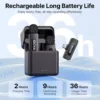 یکی از ویژگیهای مهم این میکروفون، باتری با دوام بالا است که میتواند برای ساعتها کار کند بدون اینکه نیاز به شارژ مجدد داشته باشد. این قابلیت برای کسانی که در پروژههای طولانیمدت یا استریمهای زنده فعالیت میکنند، بسیار مفید است.