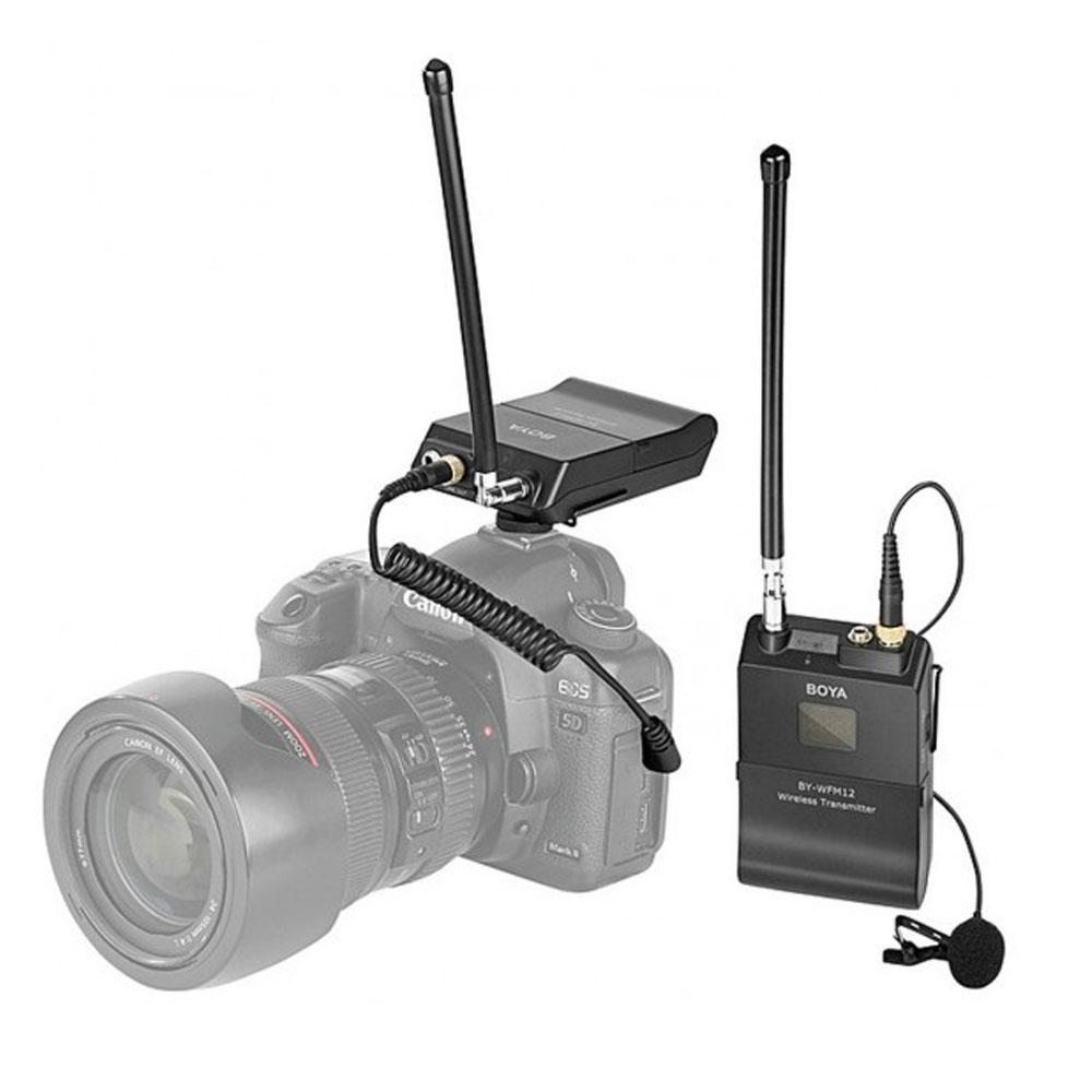 میکروفون بویا BY WFM12 ، یک میکروفون بی سیم کوچک و جمعوجور از برند معروف بویا است، که قیمتی بسیار مناسب دارد. شما میتوانید سیستم میکروفون را به انواع دستگاههای ضبط مثل گوشی موبایل و یا دوربین متصل کنید و از آن، برای پروژههای مختلف صوتی و یا صوتی-تصویری استفاده نمایید. این میکروفون، 12 کانال VHF را در اختیار شما قرار میدهد و از وضوح صوتی بینظیری برخوردار است.