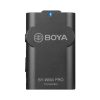 ميكروفون بیسیم بویا BY-WM4 Pro-K3 شامل یک میکروفون lavalier جهتدار چند جهته و فرستنده بدنه با گیره تسمه است که به سوژه شما امکان میدهد بدون نیاز به دست و به صورت هندزفری در مقابل دوربین برای نمایشها، ارائه ها و کنفرانسها حرکت کند. گیرنده اولترا کامپکت و دو کاناله حداکثر محدوده 60 متری را فراهم میکند و روی اتصال Lightning بر روی iPhone یا دستگاه همراه سازگار شما سوار میشود و همچنین برق آن را تأمین میکند.